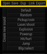 Jfxr provides some options for the type of sound effects, that you can choose from. Like, hit/damage, coin collect/powerup, etc..