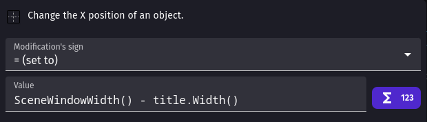 To change this, GDevelop comes with an Alignment action. Simply set it to left, center or right to change the alignment of your multi-line text.