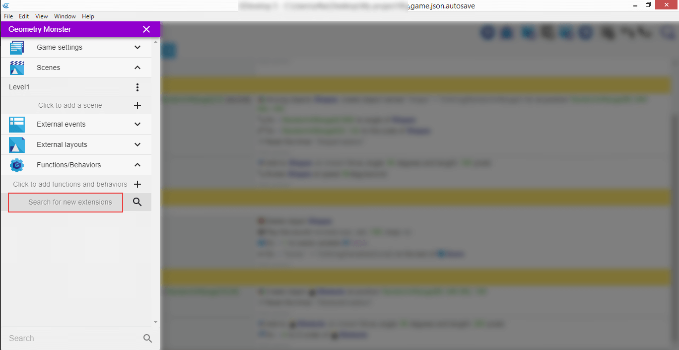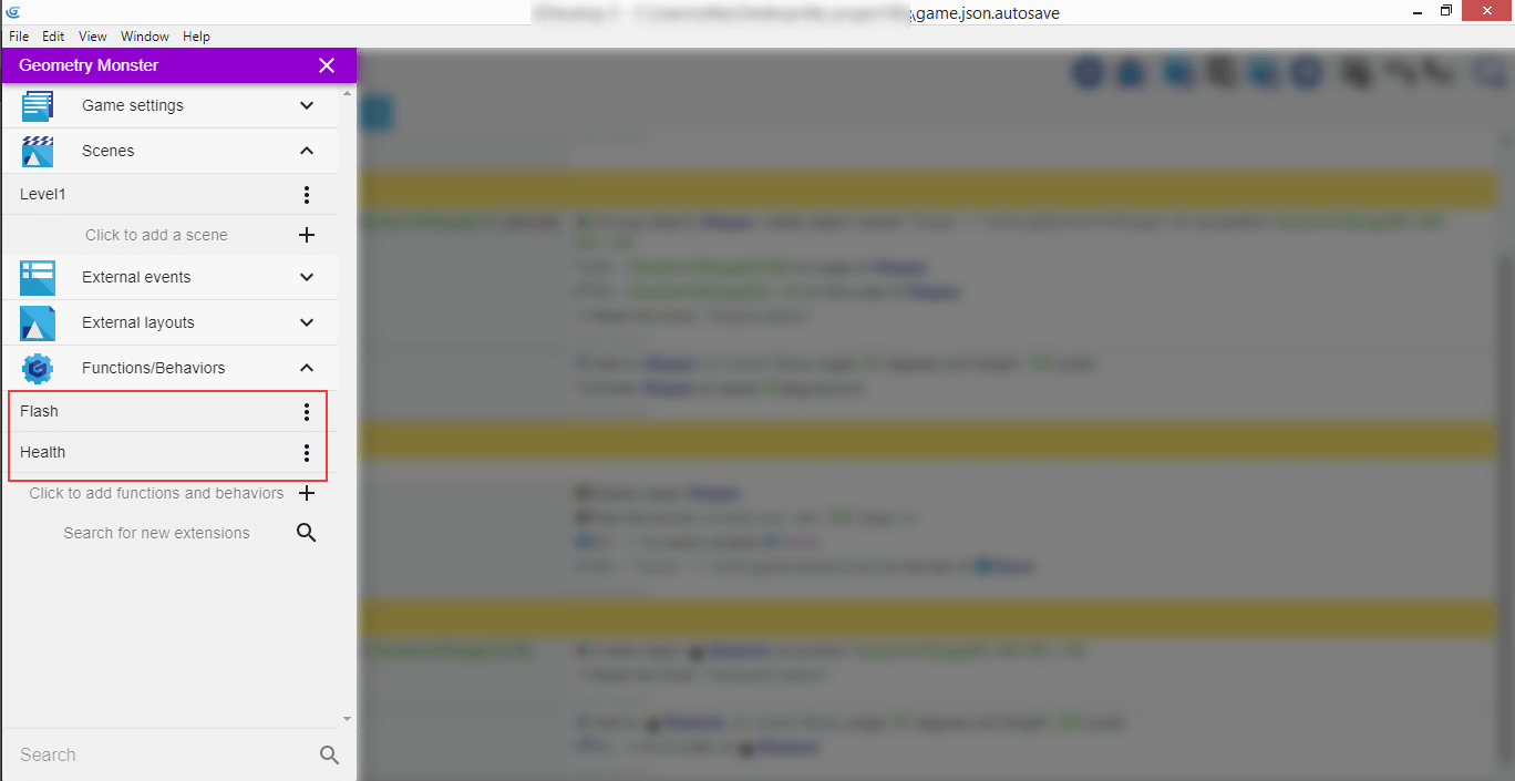 Now when we have both extensions installed, they should be listed in the left panel, under "Functions/Behaviors".