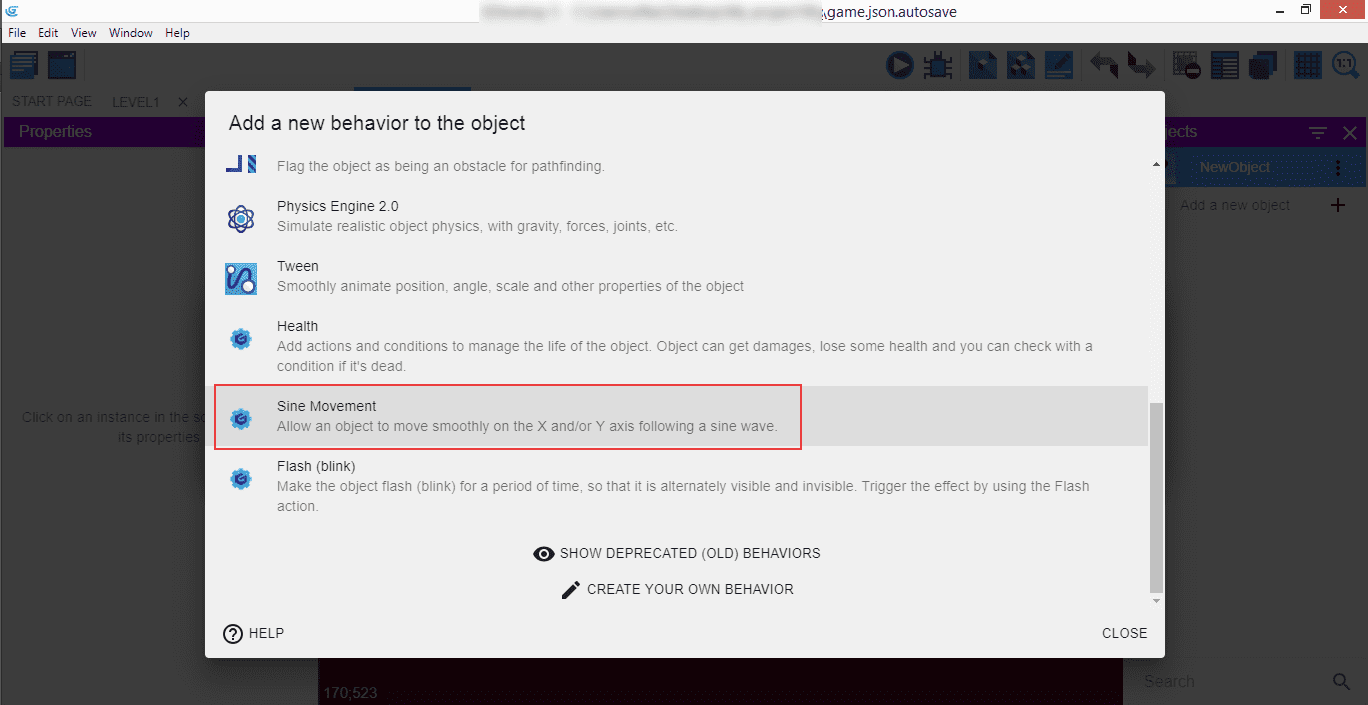 Go through the list of behaviors and click on the new "Ellipse movement".